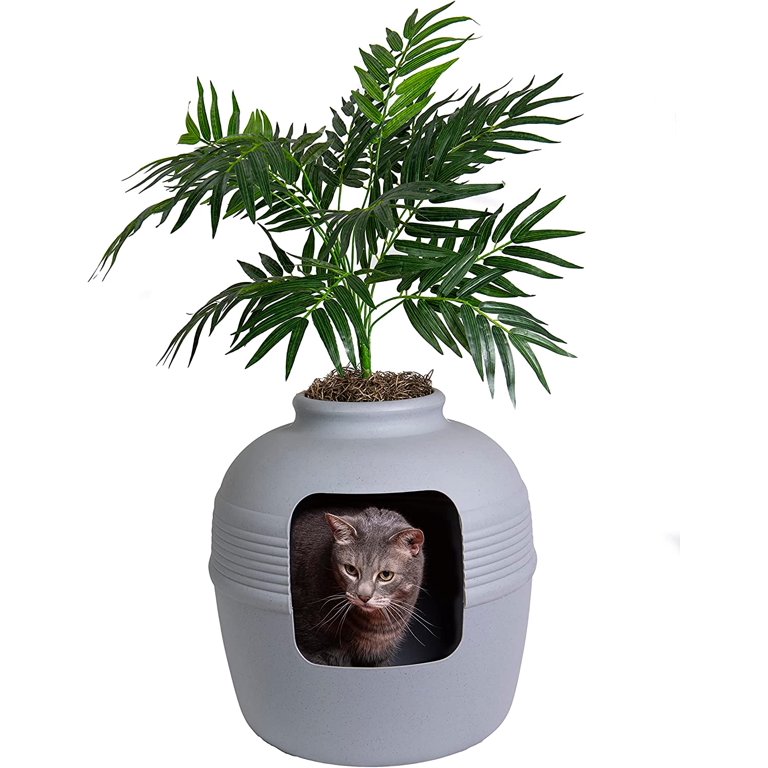 Hidden Litter Box Artificial Plants Enclosed Cat Planter Litter Box Vented Odor Filter Easy To Clean Stone Gray Walmart Com