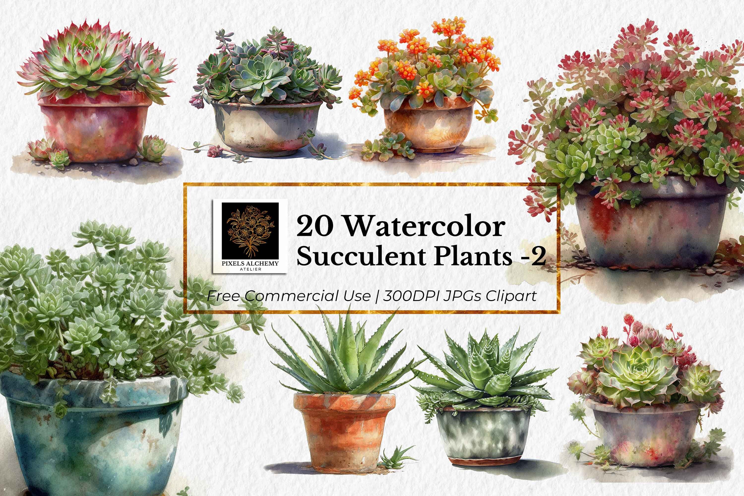 20 Succulent Plants Jpgs Watercolor Clipart On White Etsy
