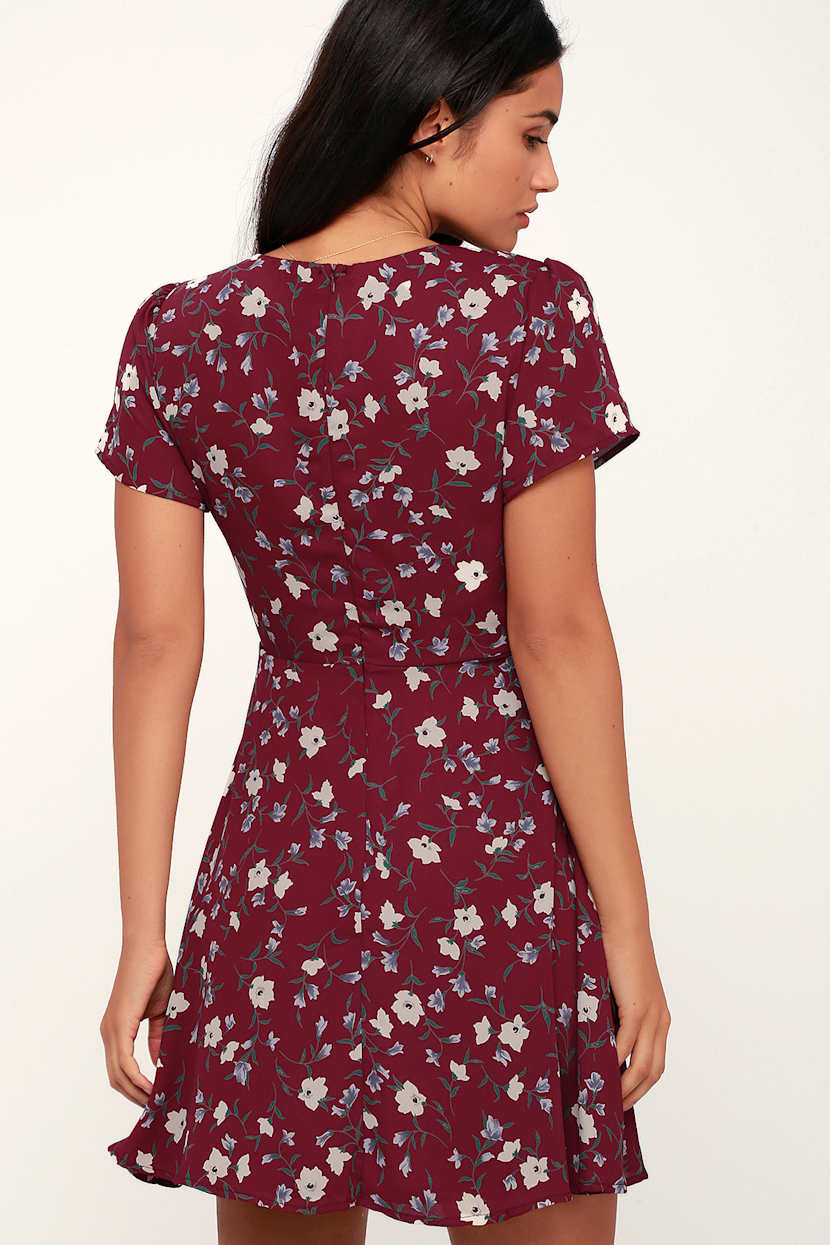 Cute Floral Dress Burgundy Floral Dress Short Sleeve Dress Lulus